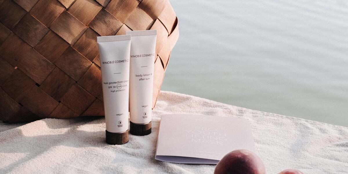 Your skincare routine on vacation should focus on keeping your skin well-hydrated. This is key to protecting it from dryness and damage caused by the sun, saltwater, and changing climates. The VINOBLE COSMETICS body lotion & after sun with cold-pressed grapeseed oil, valuable antioxidants, and panthenol is perfect for soothing and nourishing sun-stressed skin.